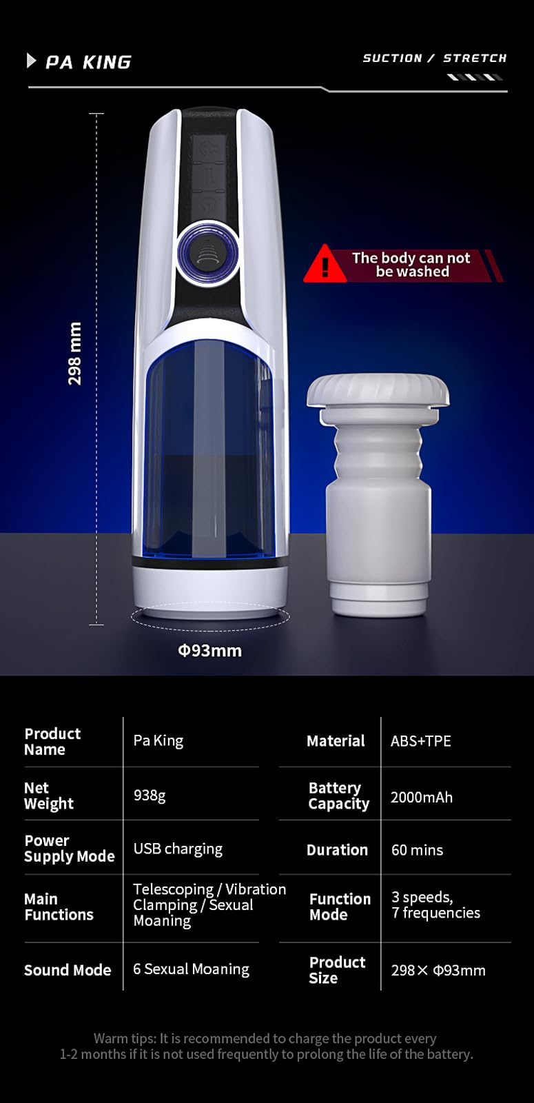 Equipped with a USB rechargeable lithium battery, this masturbator provides up to 60–90 minutes of pleasure on a full charge. It’s always ready when you are — whether you’re at home or on the go.