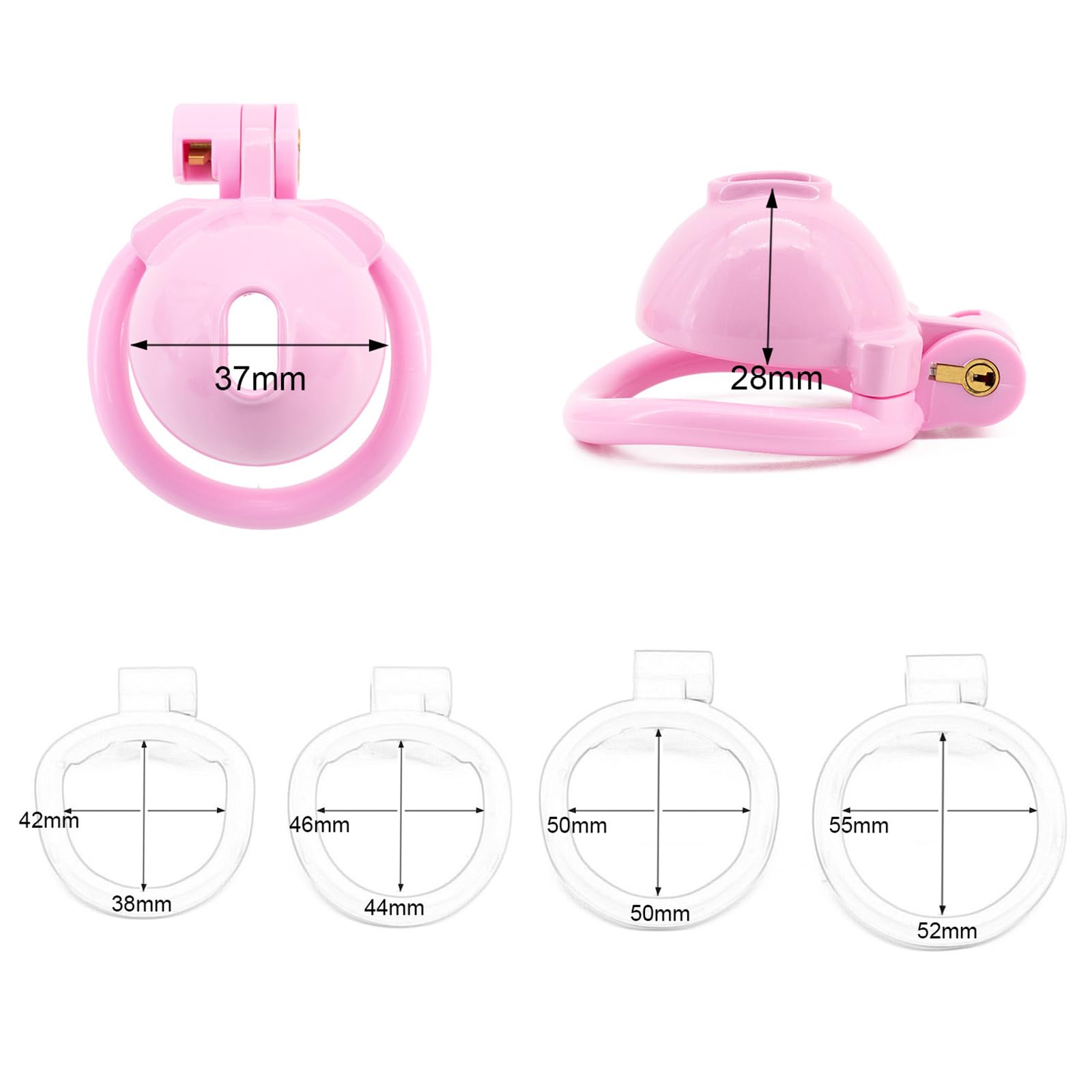 The set includes four interchangeable rings (42mm, 45mm, 48mm, 52mm), ensuring the resin chastity cage adapts to your individual size. This flexibility allows both beginners and experienced users to enjoy a tailored fit that balances comfort with secure restriction.
