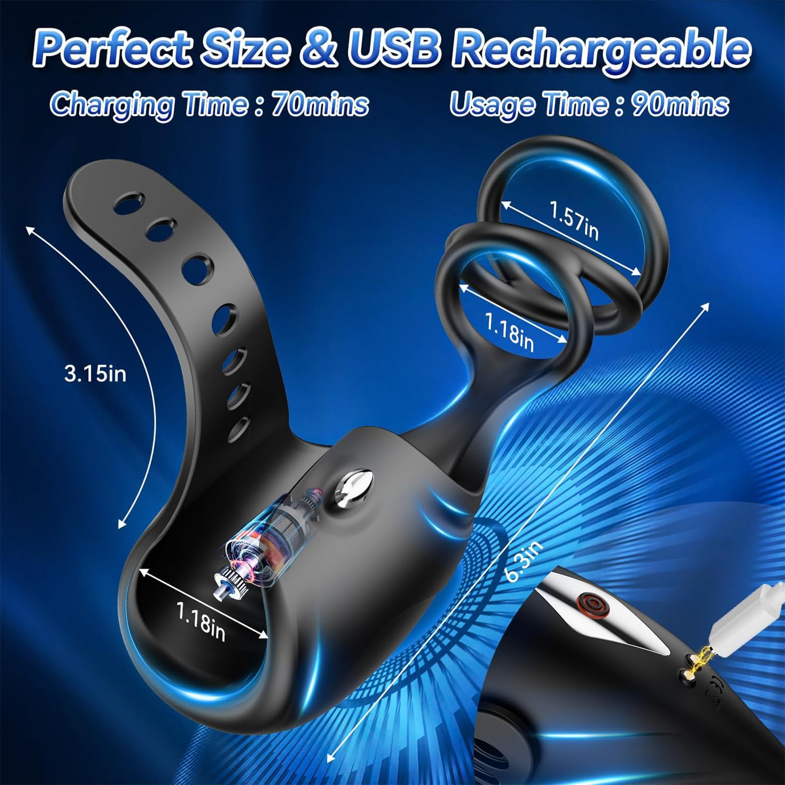 With an adjustable buckle, it fits all sizes comfortably. Its ergonomic design not only enhances pleasure but also ensures a secure fit for hands-free use, making it ideal for penis endurance training and sustained sessions.