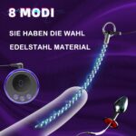 The “Multi-Frequency Current” combined with “19 kinds of electric shock intensity” and “8 modes” offers a vast range of customizable sensations. This allows users to precisely control the level and type of electrical stimulation, from subtle tingles to intense pulses. For the “urethral dilator” and “analplug,” this means specific internal nerve pathways can be targeted, leading to unique and profound pleasure or discomfort, depending on desired intensity. In SM extreme bondage, this versatility is crucial for gradually escalating sensations, exploring pain/pleasure thresholds, and enhancing the overall intensity of the scene.