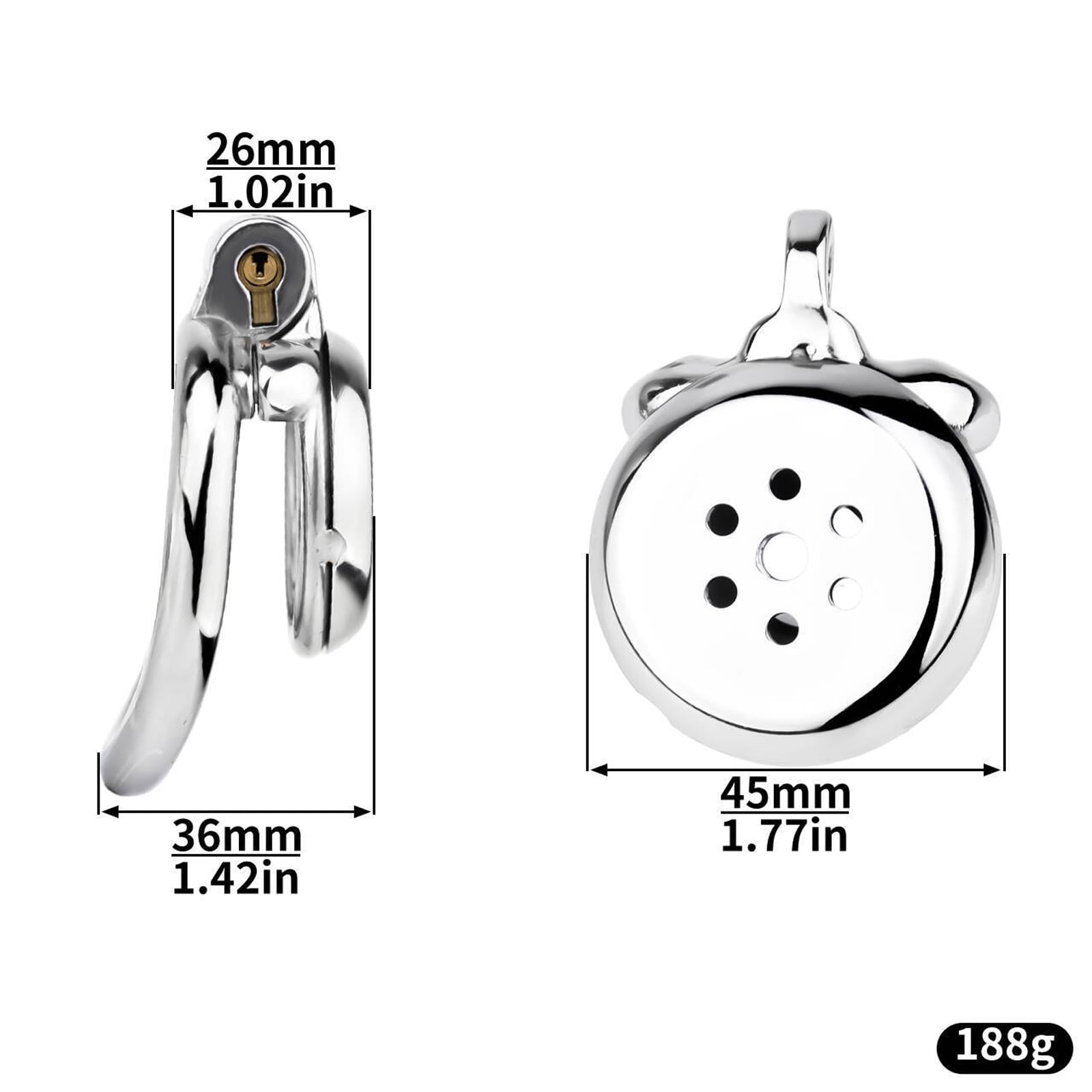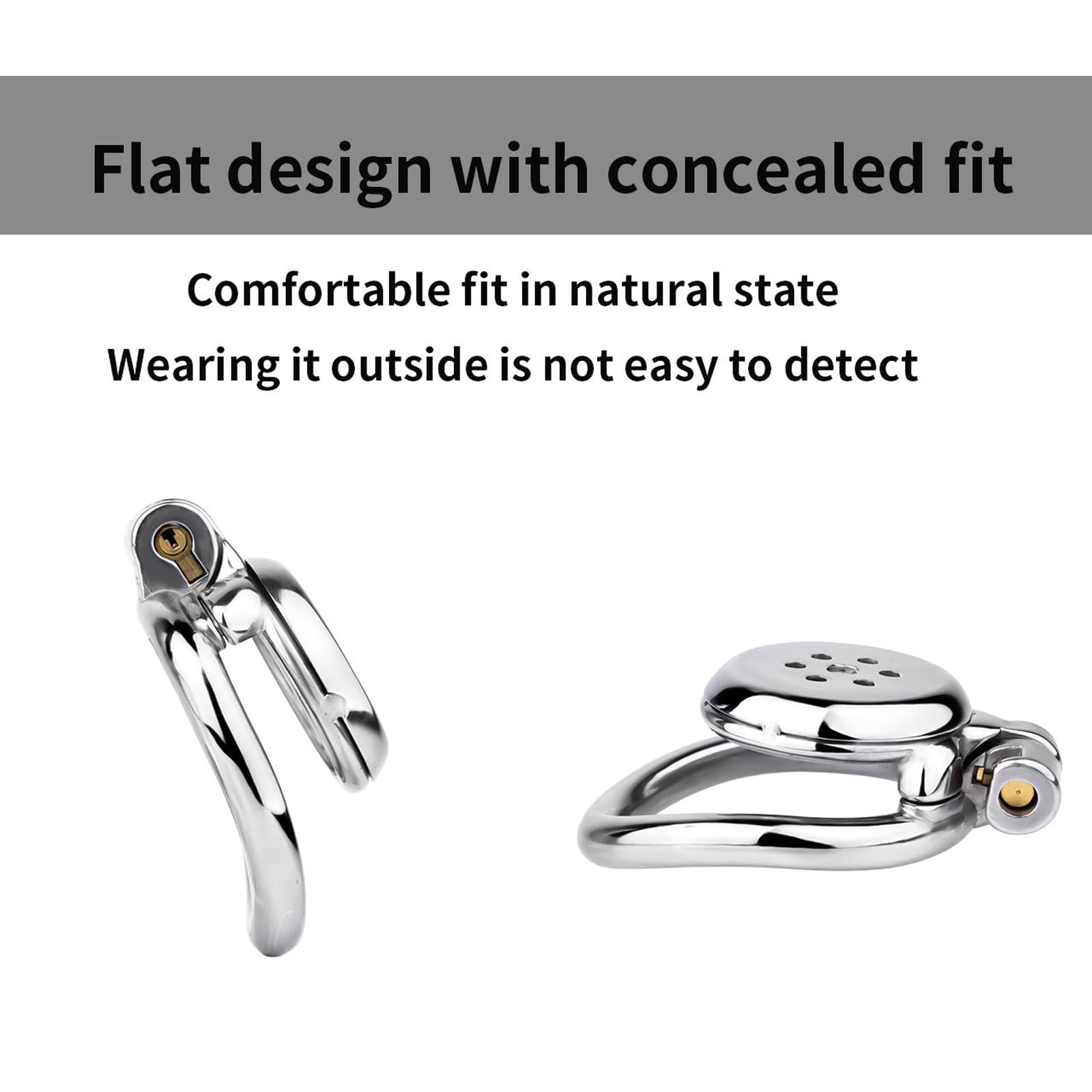 This stainless steel chastity cage is designed with a flat, hollow structure that promotes airflow and reduces pressure. The ergonomic shape makes it ideal for extended wear, ensuring daily urination and long-term chastity practice remain comfortable and discreet.