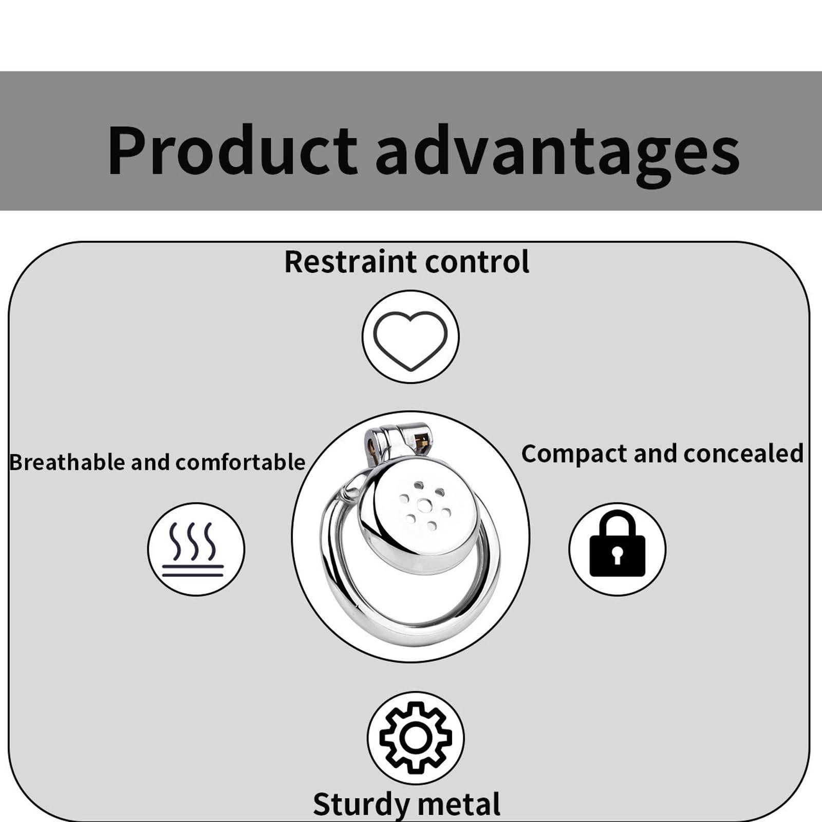 Unlike bulky padlocks, this metal male chastity cage uses a discreet CB lock system that enhances privacy and eliminates noise. Only the keyholder can unlock it, providing strong security for both private wear and public control scenarios.