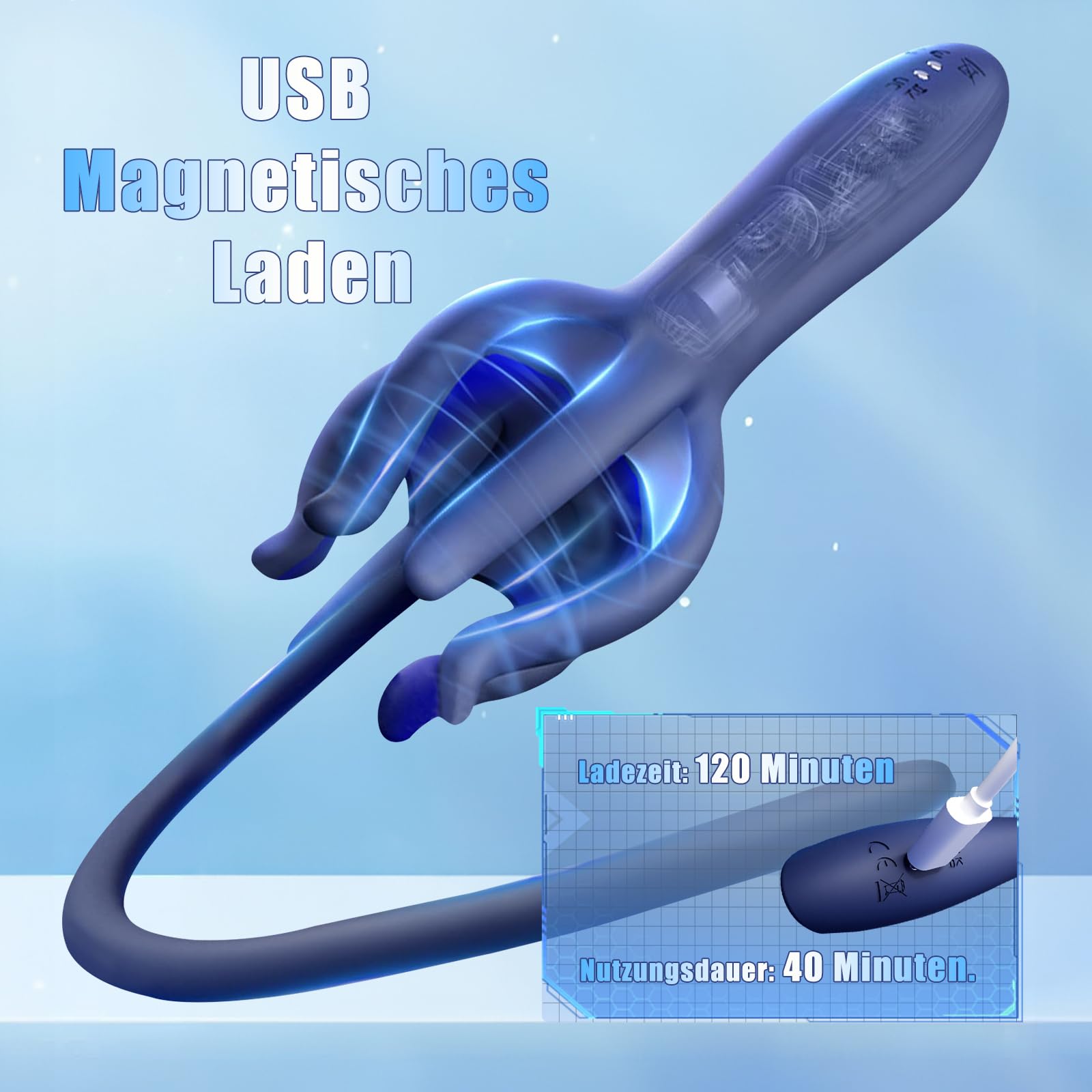 The toy includes a USB magnetic charging cable, making power-ups quick and convenient. It’s also fully waterproof, allowing you to wash it thoroughly under warm water with mild soap or a toy cleaner after each use—perfect for maintaining hygiene and extending the toy’s lifespan.