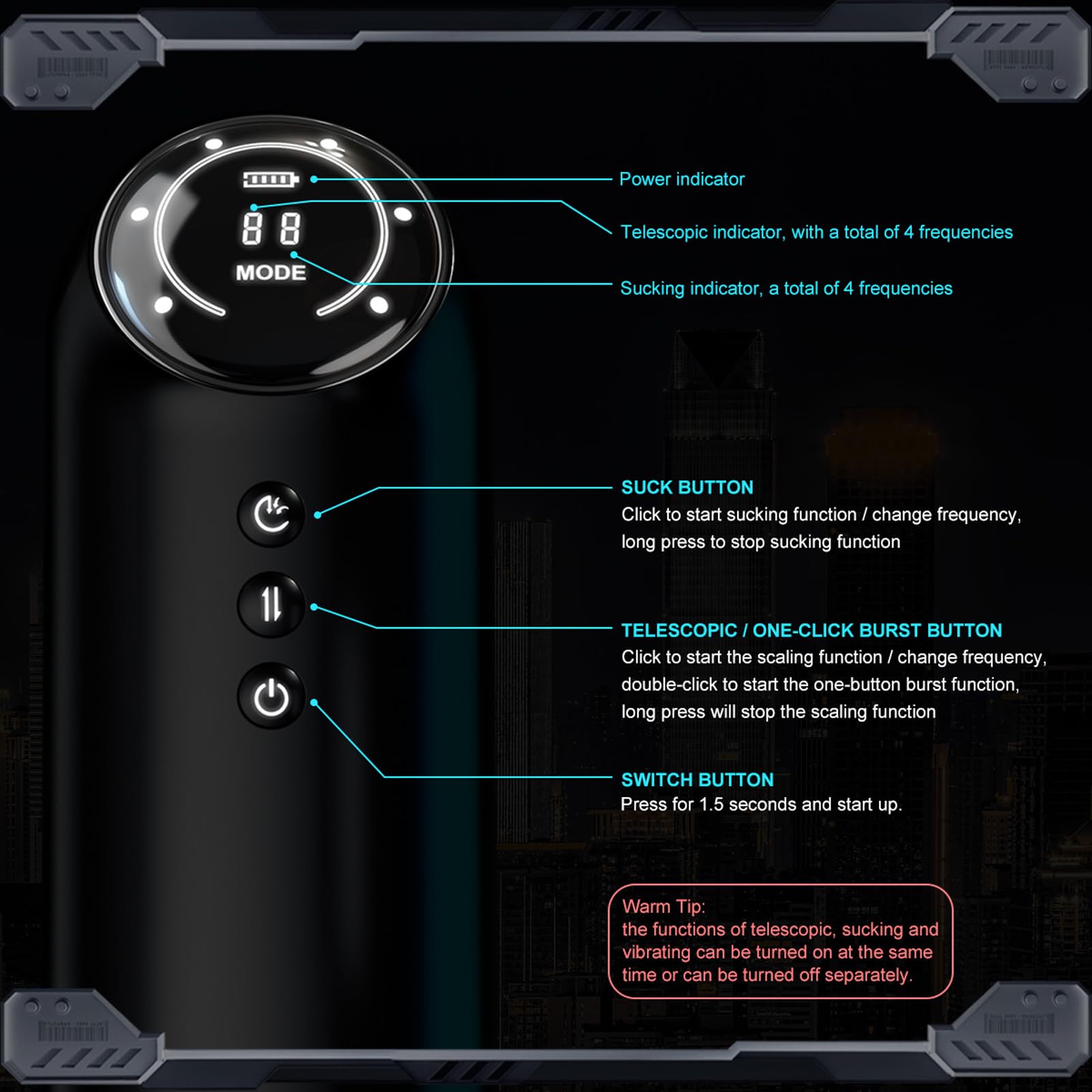 Feel deep rhythmic stroking, oral-like suction, and intense vibration all at once, amplified by a gentle warmth that mimics body heat (up to 42°C). Whether you crave slow teasing or a powerful climax, this toy adapts to your every desire.