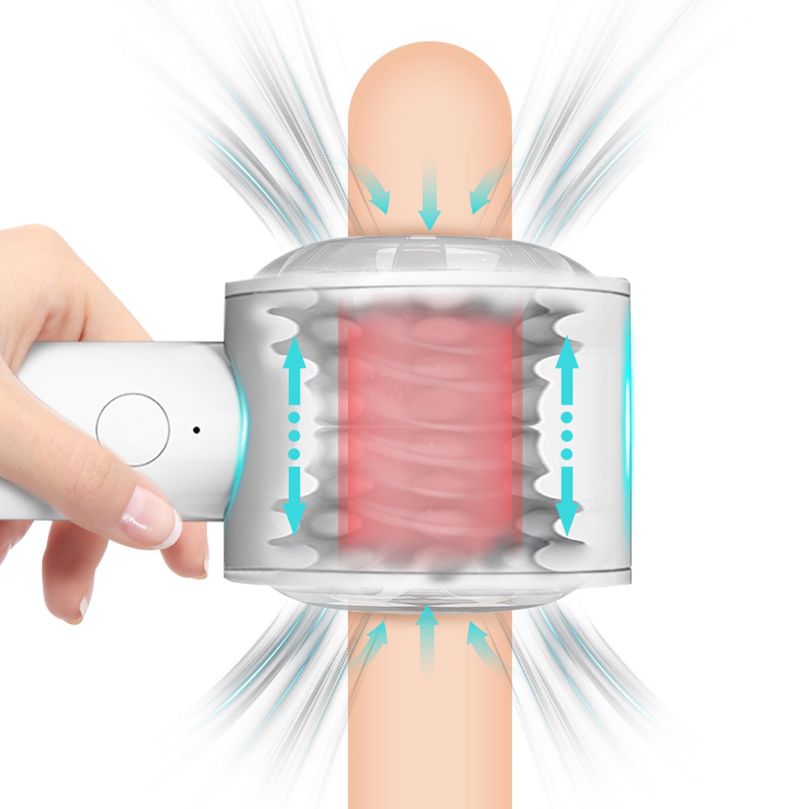 The inner chamber is made from high-quality, environmentally friendly TPE material. It features built-in special convex particles, a realistic vaginal texture, and internal multi-layered spiral folds. These elements combine to provide intense frictional pleasure, significantly enhancing your orgasm stimulation.