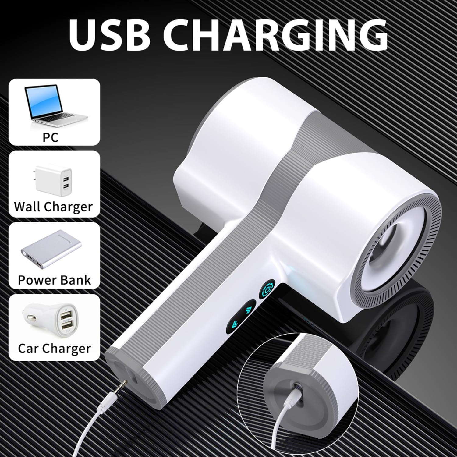- Charging: USB rechargeable