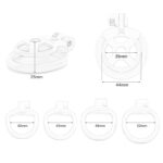- This set includes four interchangeable cock rings in 42mm, 45mm, 48mm, and 52mm. Whether you are new to chastity or experienced in denial play, this cock cage adapts to different anatomies and allows you to find the perfect balance between restriction and comfort.