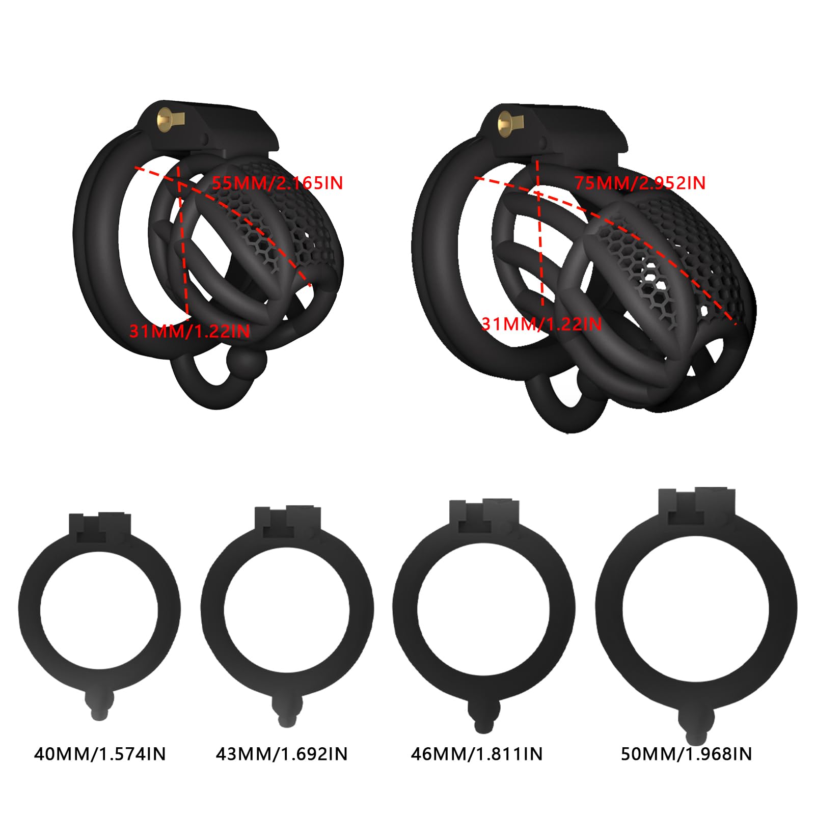 📏 Variety of Sizes and Colors – Each cage includes four rings in sizes 40mm, 43mm, 46mm, and 50mm, and is available in both long and mini versions. Choose from a range of colors including black, pink, and white to suit your personal preference.