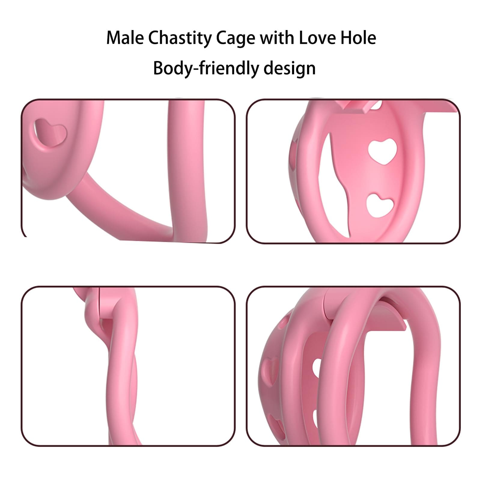 An expanded urination opening reduces splash and improves hygiene. Heart-shaped holes increase airflow so the penis stays cool during long sessions.