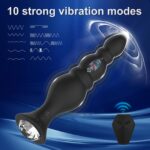 The prostate vibrator offers 10 powerful vibration patterns that range from steady pulse to rhythmic escalation. The shaft features a 3-bead texture configuration — each bead measuring between 2.5 cm to 3.2 cm in diameter — to deliver progressive internal stimulation during insertion and movement.