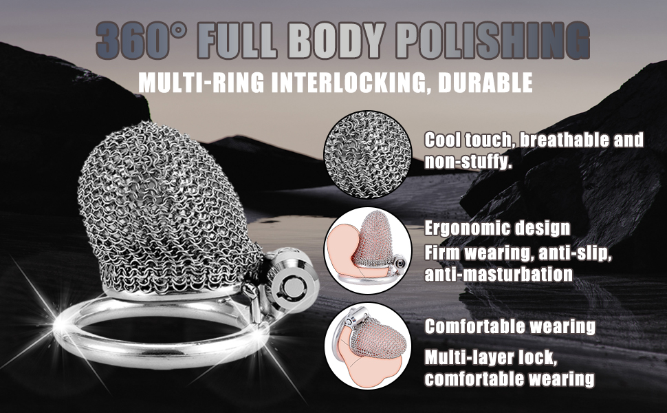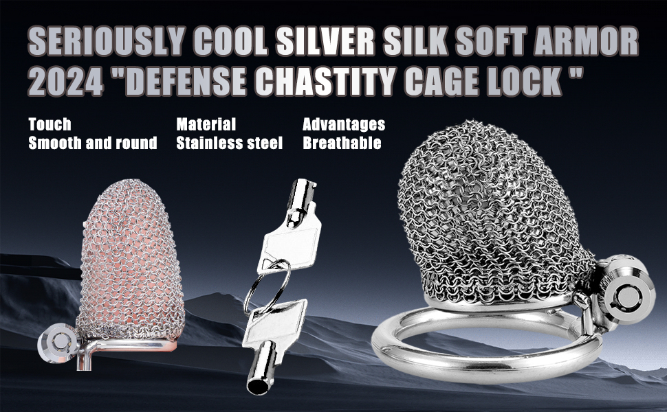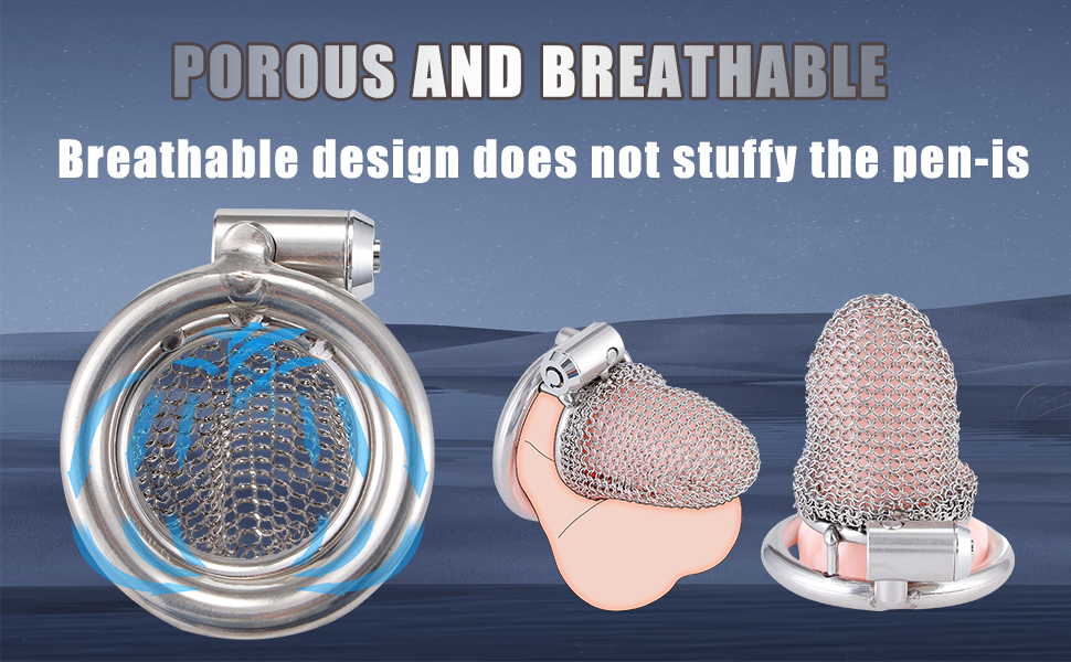 This stainless steel chastity cage features a soft mesh design for discreet daily wear.