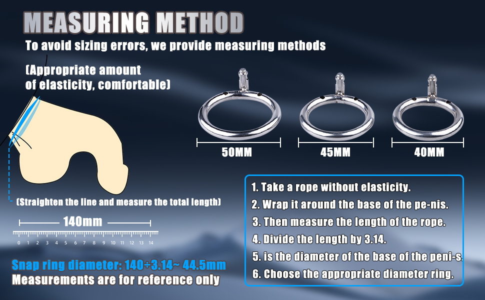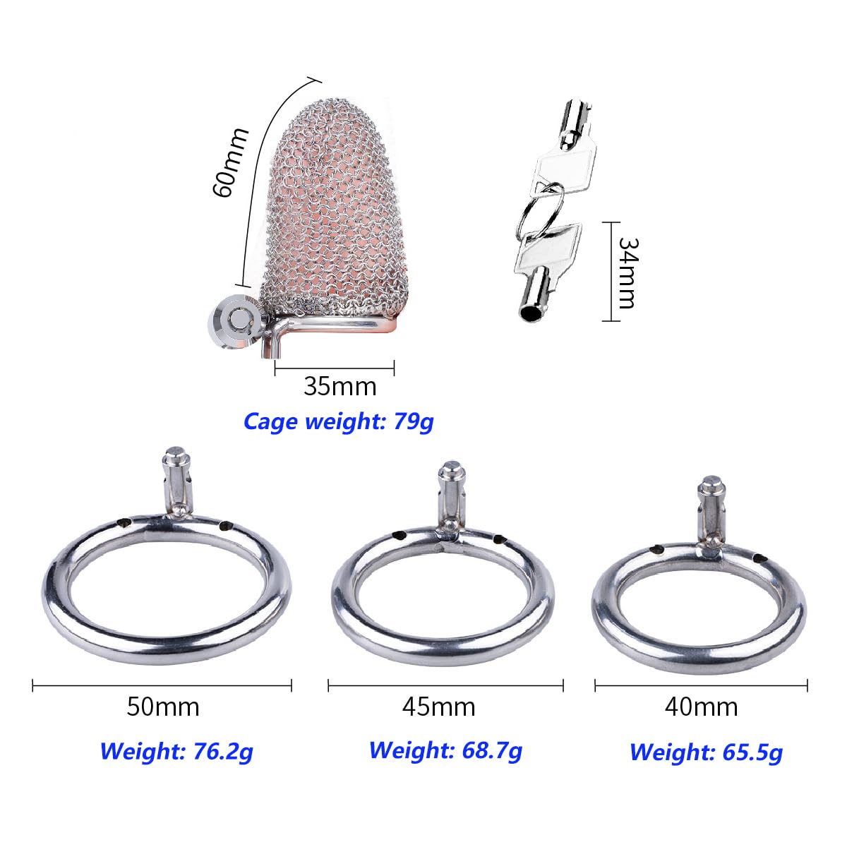 Three different ring sizes (1.57″, 1.77″, 1.97″) are included, ensuring a comfortable and secure fit tailored to your anatomy. This chastity cage stainless steel sizing flexibility reduces discomfort during extended wear.