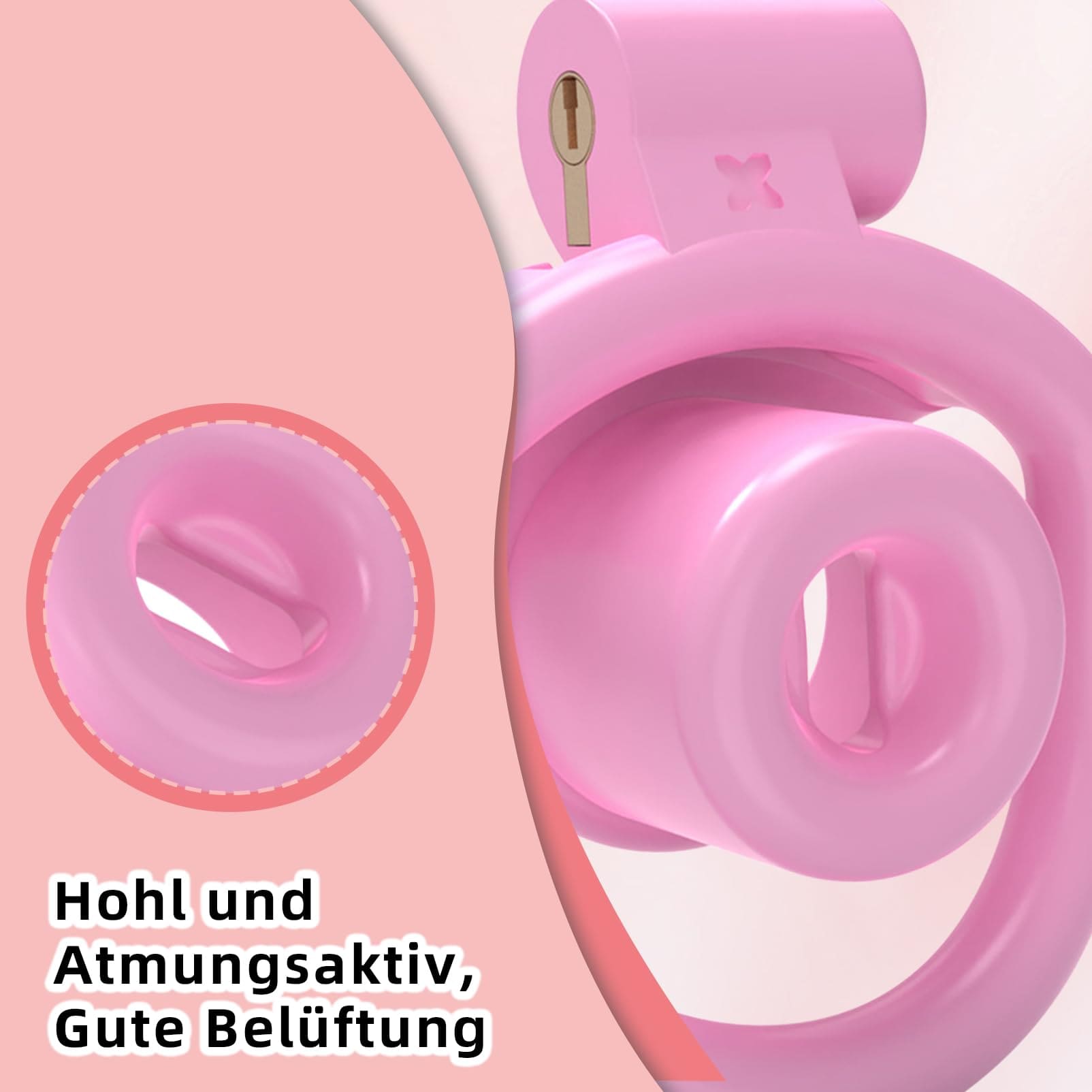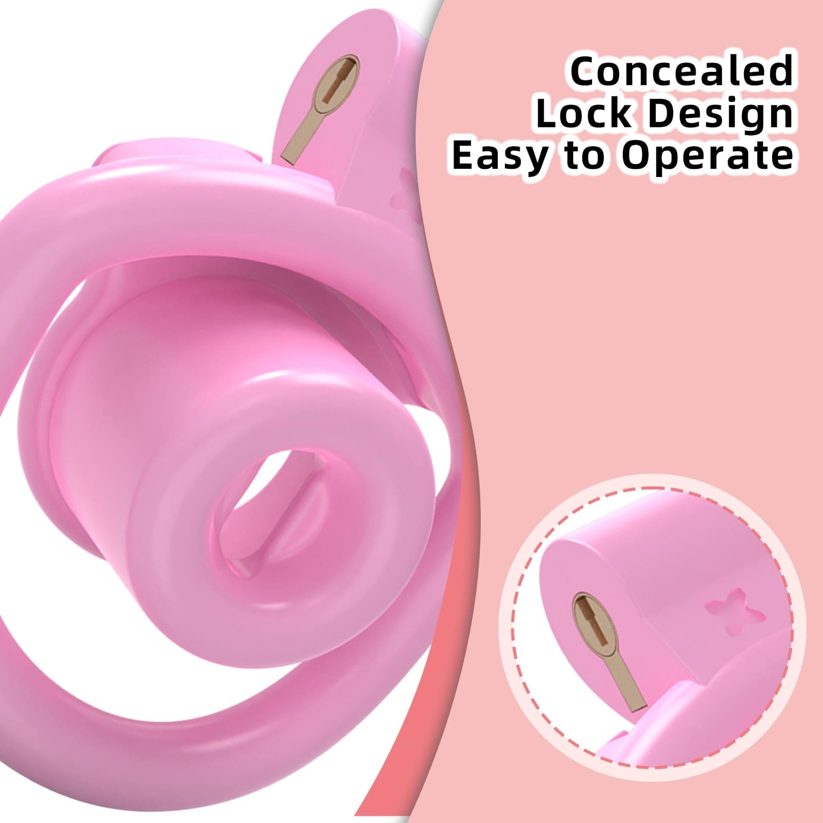 A hollow structure enhances airflow and supports natural urination while restrained. The concealed lock keeps the profile smooth for stealth wear.