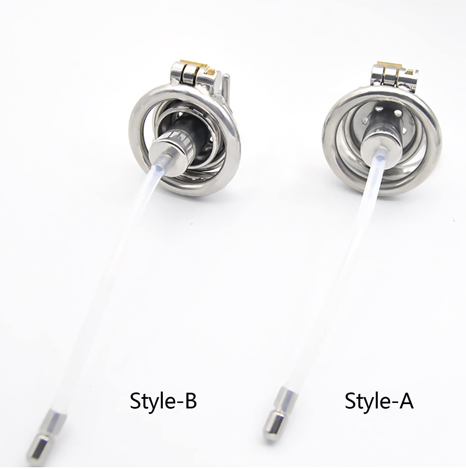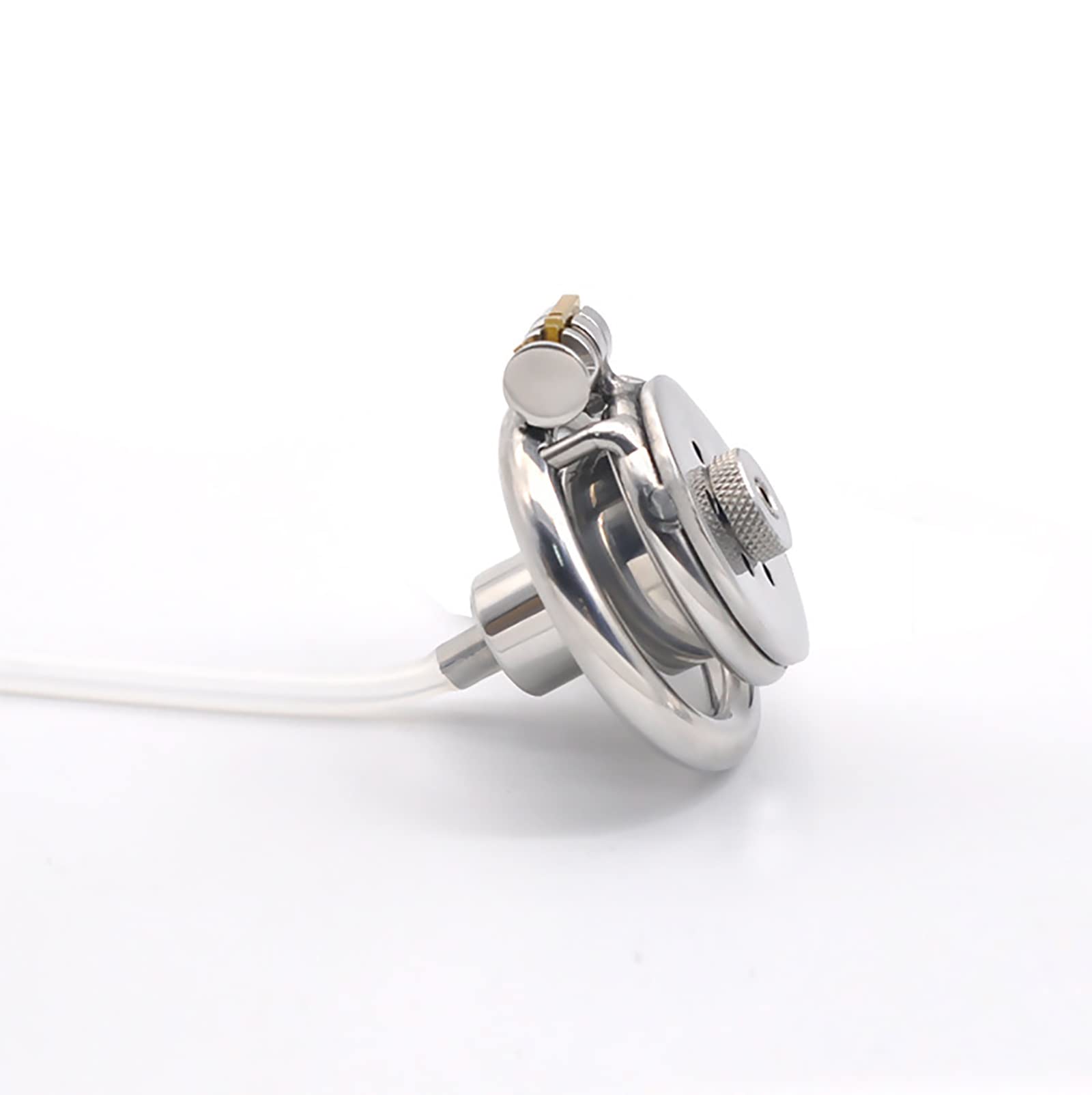 This chastity cage stainless steel includes a small urethral outlet and removable catheter for versatile play. It supports unrestricted urination, enhanced stimulation, and easy cleaning, giving wearers both practicality and erotic depth.