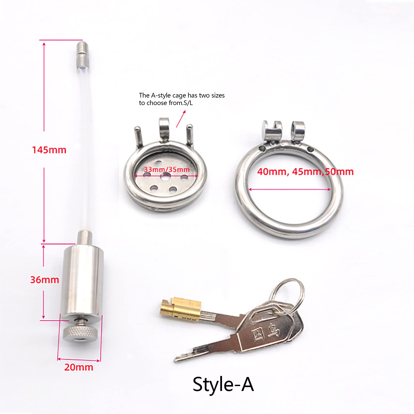 Available with cock rings in 40mm, 45mm, or 50mm, this metal male chastity cage offers a secure fit tailored to your anatomy. Two style options are provided: Style A with S/L cages for varied lengths, and Style B for a streamlined design.