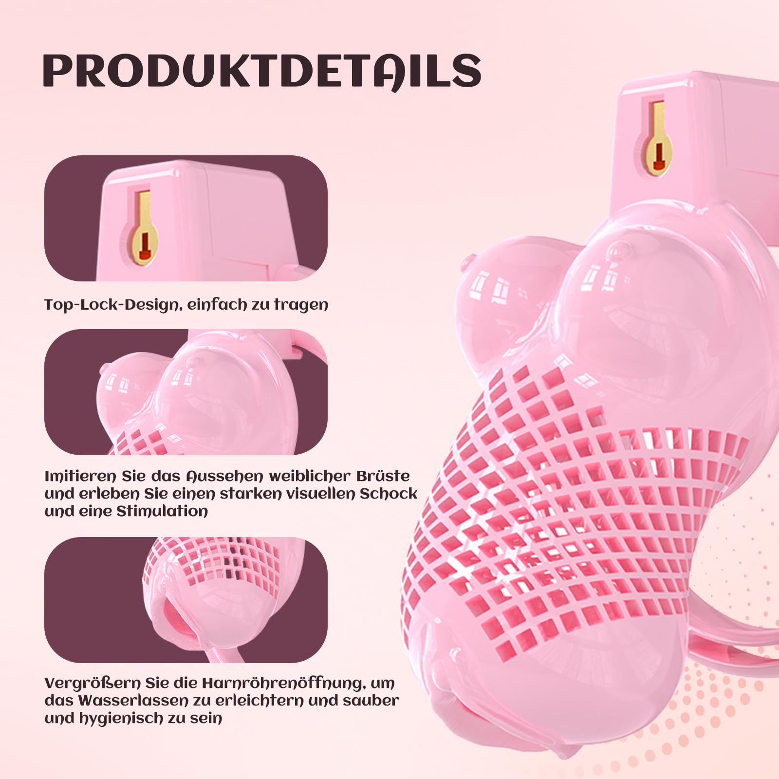 - Unique Chest Simulation: 💖 Special shape simulates the appearance of female breasts, offering strong visual shock and stimulation. Features a top-lock for easy application, enhanced security, and comfort.